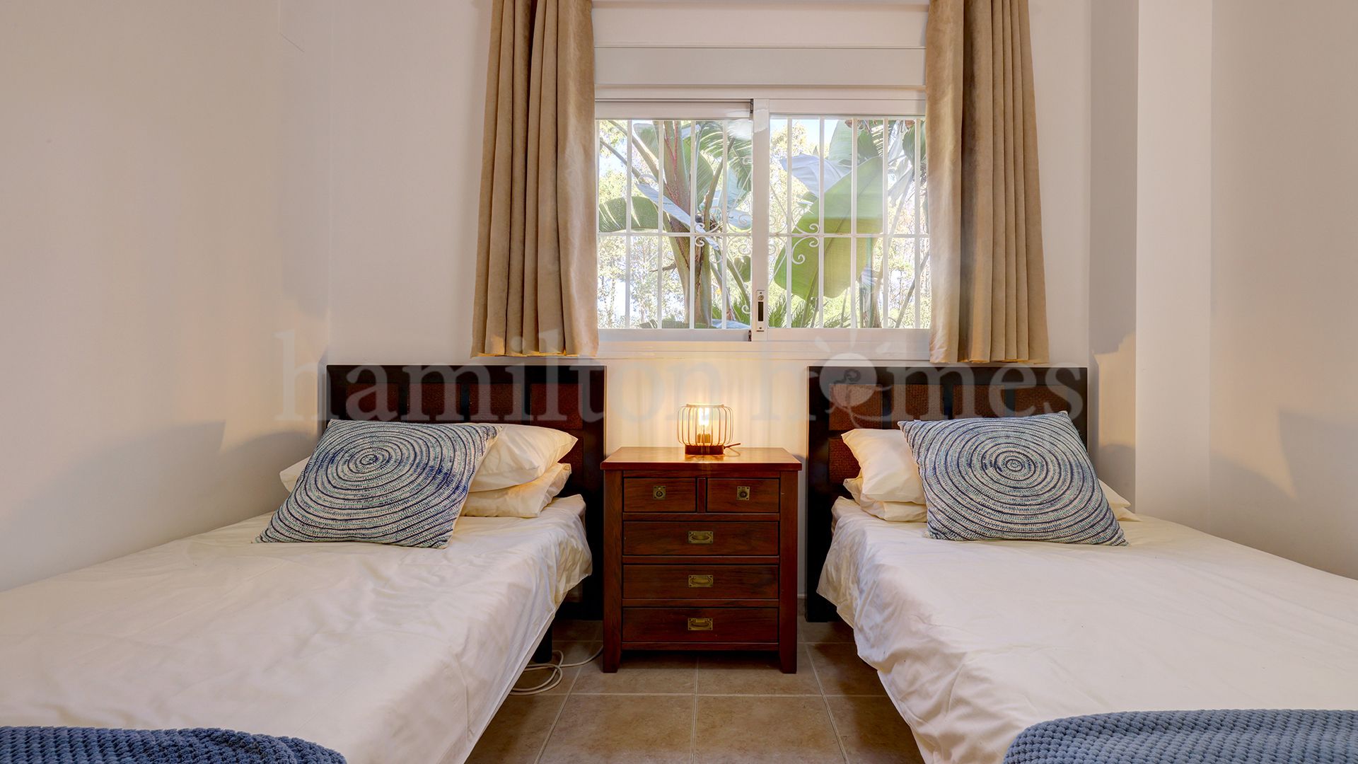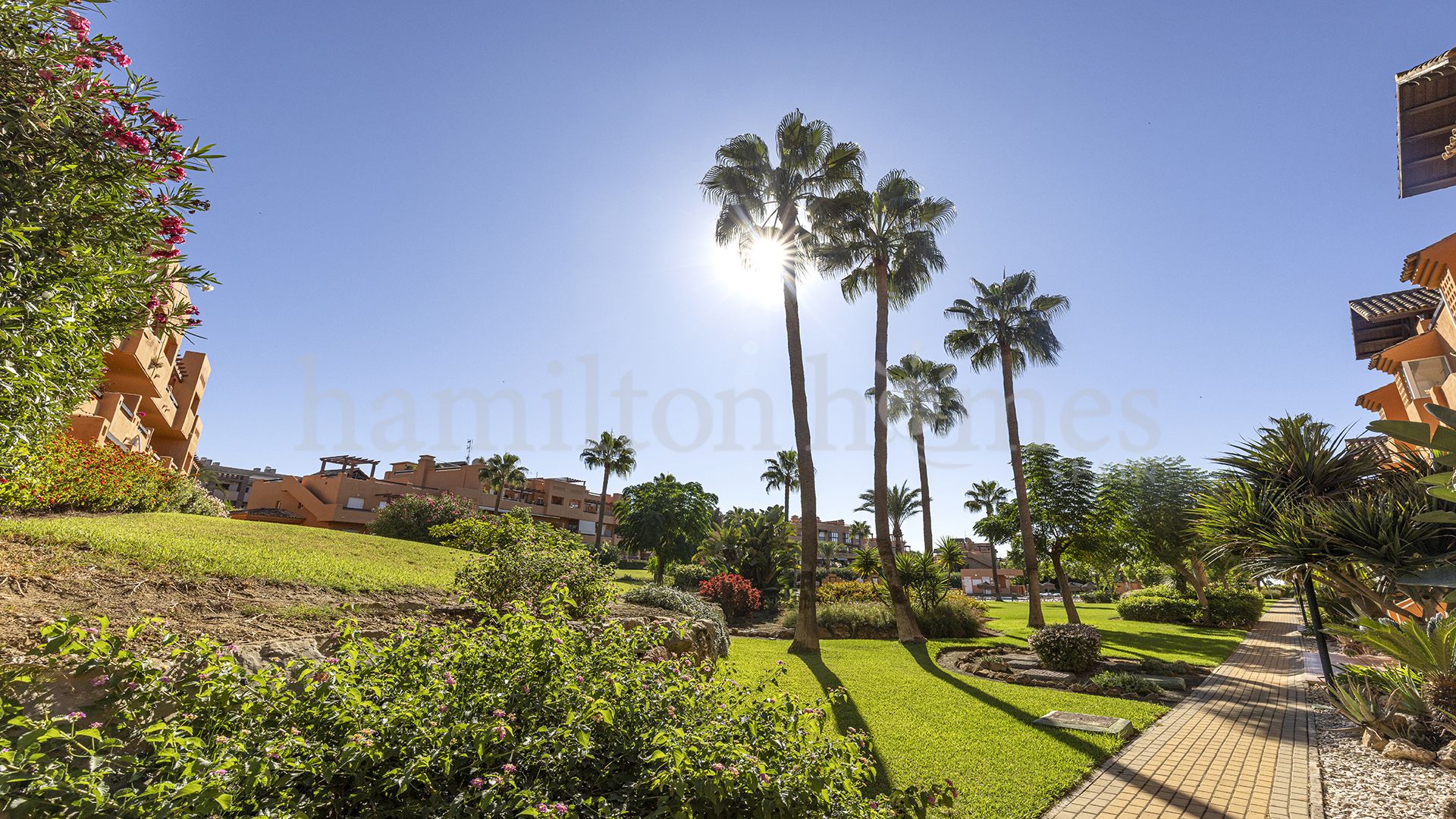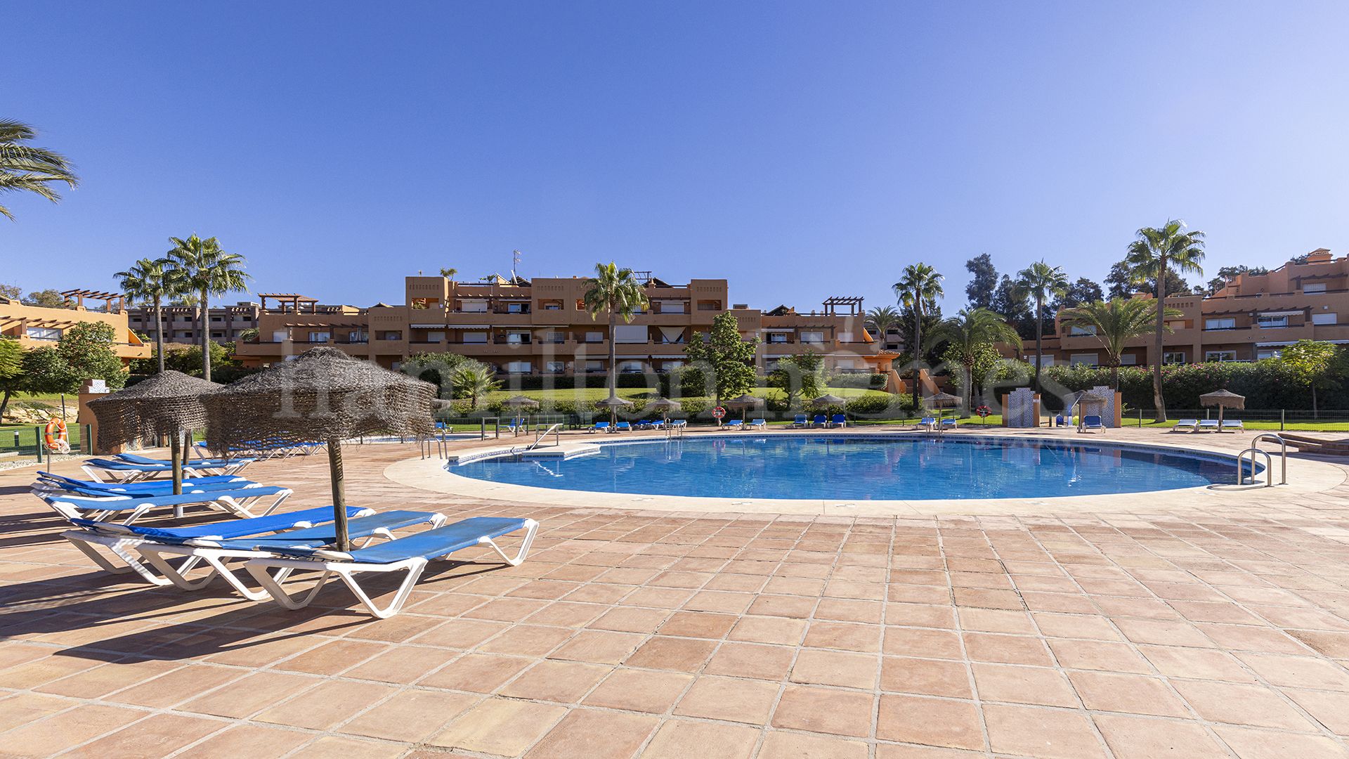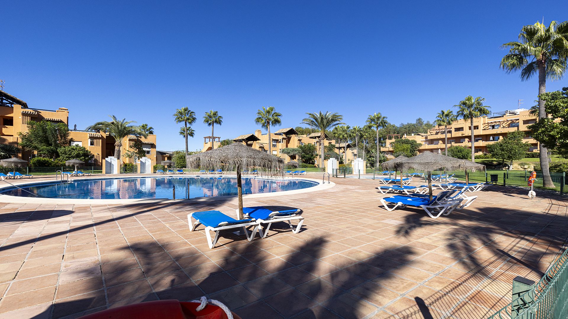 Casares del Sol es un complejo cerrado muy bien cuidado, con jardines paisajísticos y piscinas comunitarias que crean un ambiente tranquilo y seguro para sus residentes.