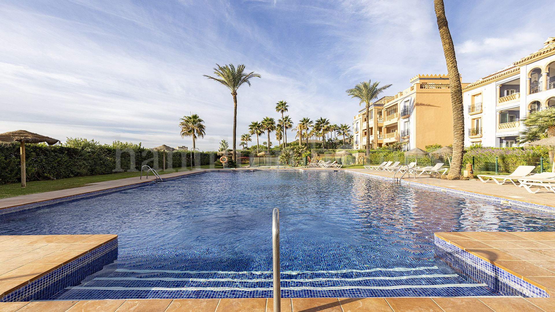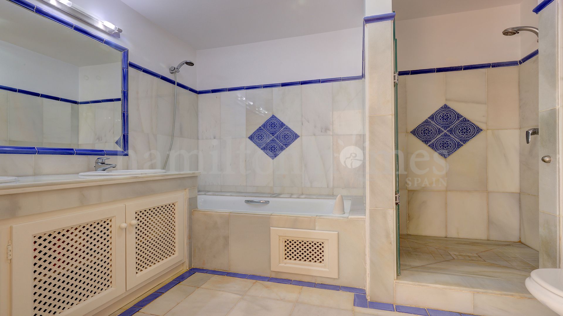 El complejo destaca por su diseño elegante, sus jardines consolidados con fuentes, dos piscinas comunitarias y seguridad 24 horas. Desde aquí, podrás disfrutar de acceso directo a las playas con Bandera Azul de Casares, al popular chiringuito La Sal y al prestigioso Finca Cortesin Beach Club. El encantador pueblo costero de San Luis de Sabinillas está a un paseo, Marbella se encuentra a solo 20 minutos en coche y Gibraltar está también muy cerca.